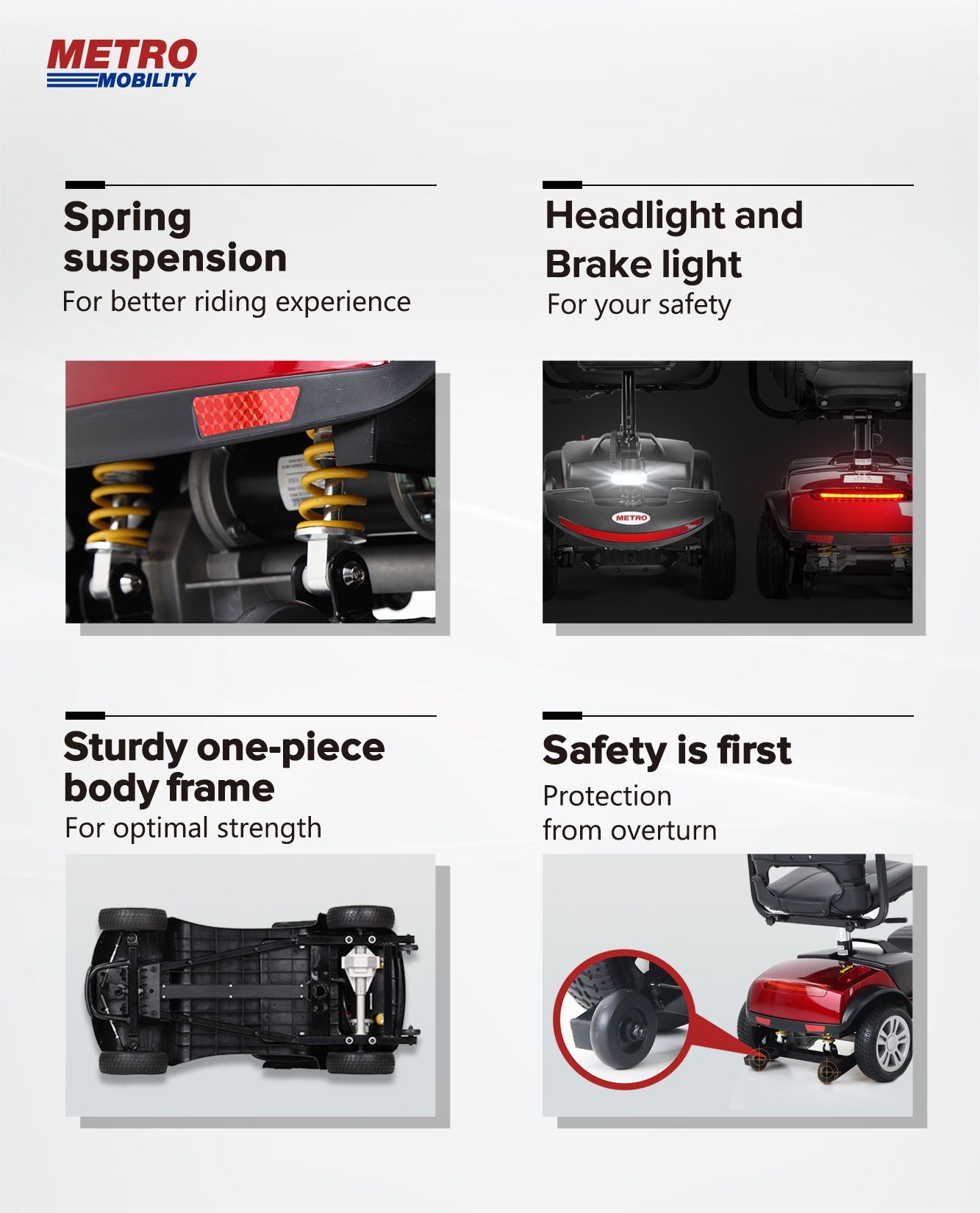 Four wheels Compact Travel Mobility Scooter with 300W Motor for Adult-300lbs, RED