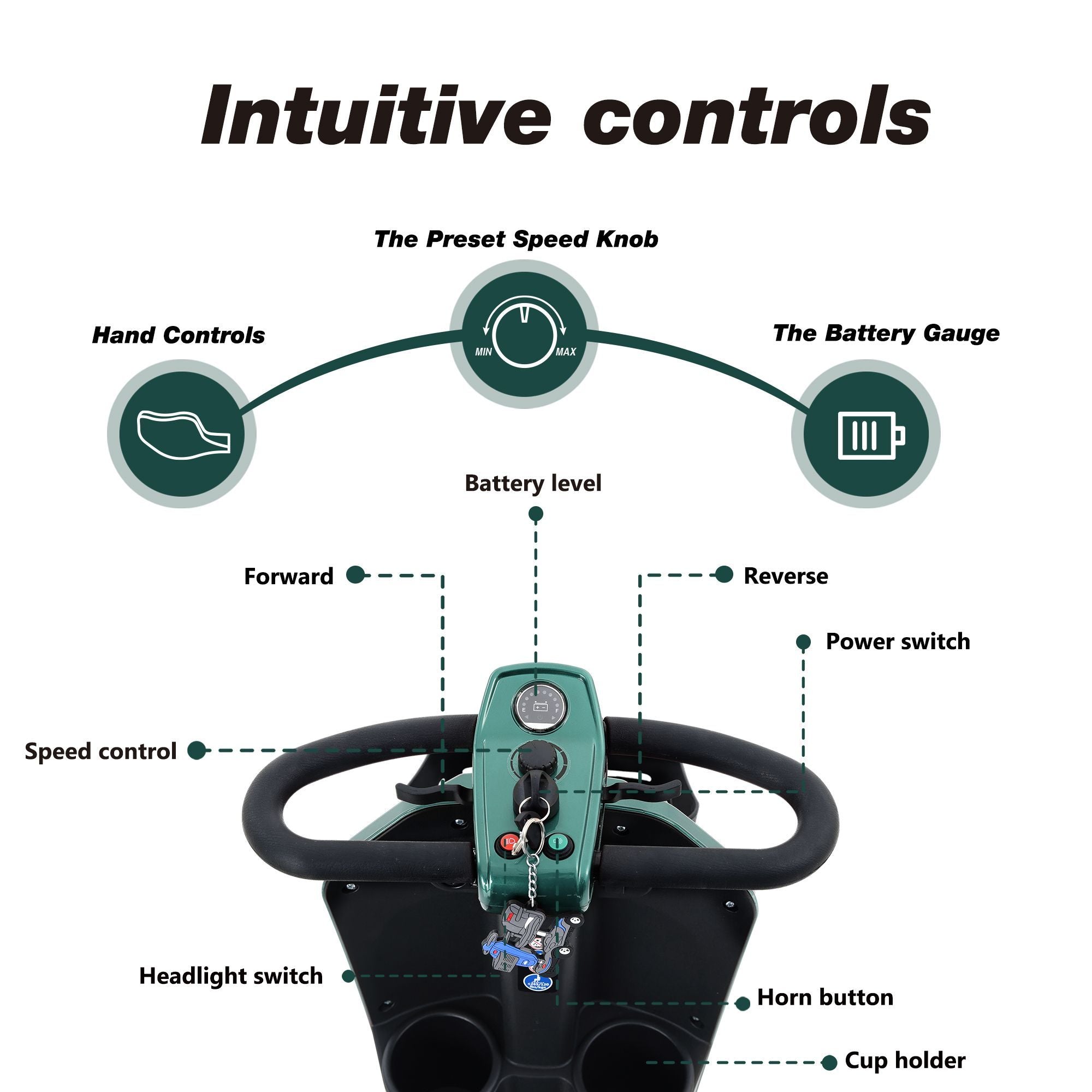 MAX PLUS EMERALD Wheels Outdoor Compact Mobility Scooter with 2pcs*20AH Lead acid Battery, 16 Miles, Cup Holders & USB charger Port
