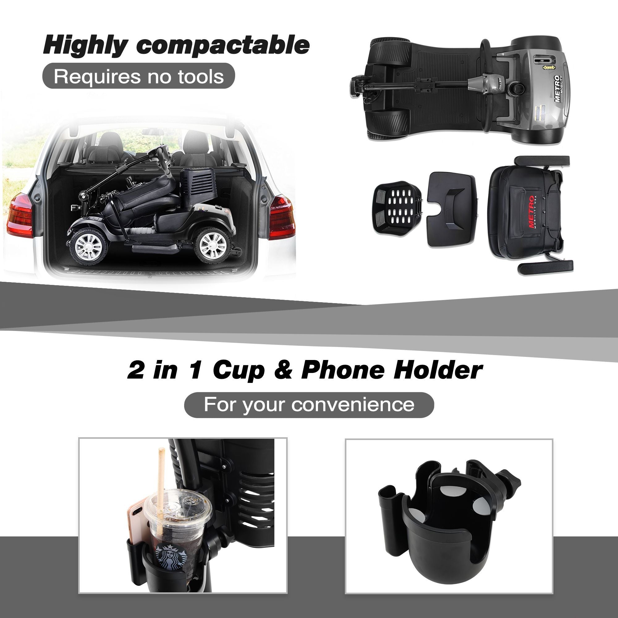 MAX SPORT GREY 4 Wheels Outdoor Compact Mobility Scooter with 2 in 1 Cup & Phone Holder