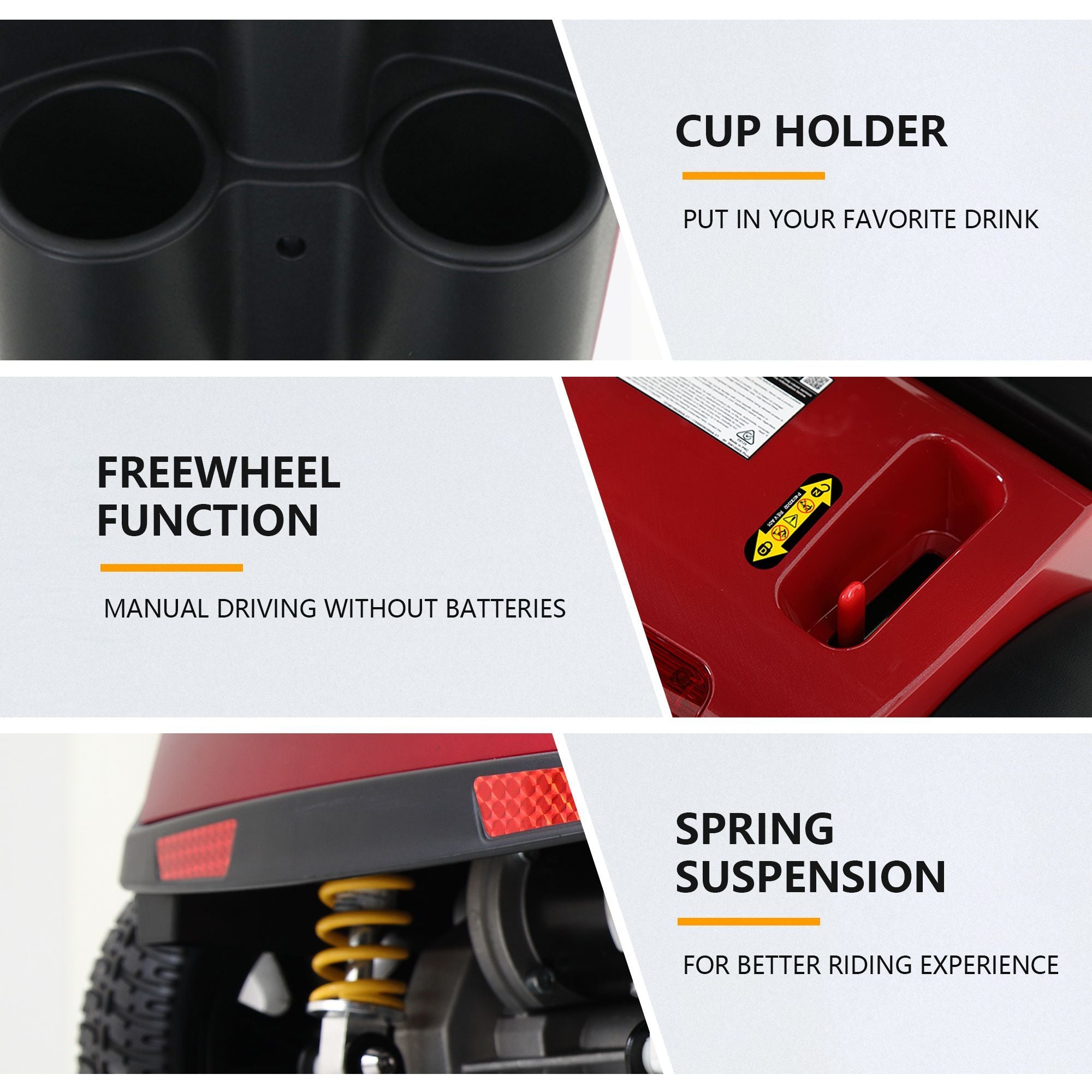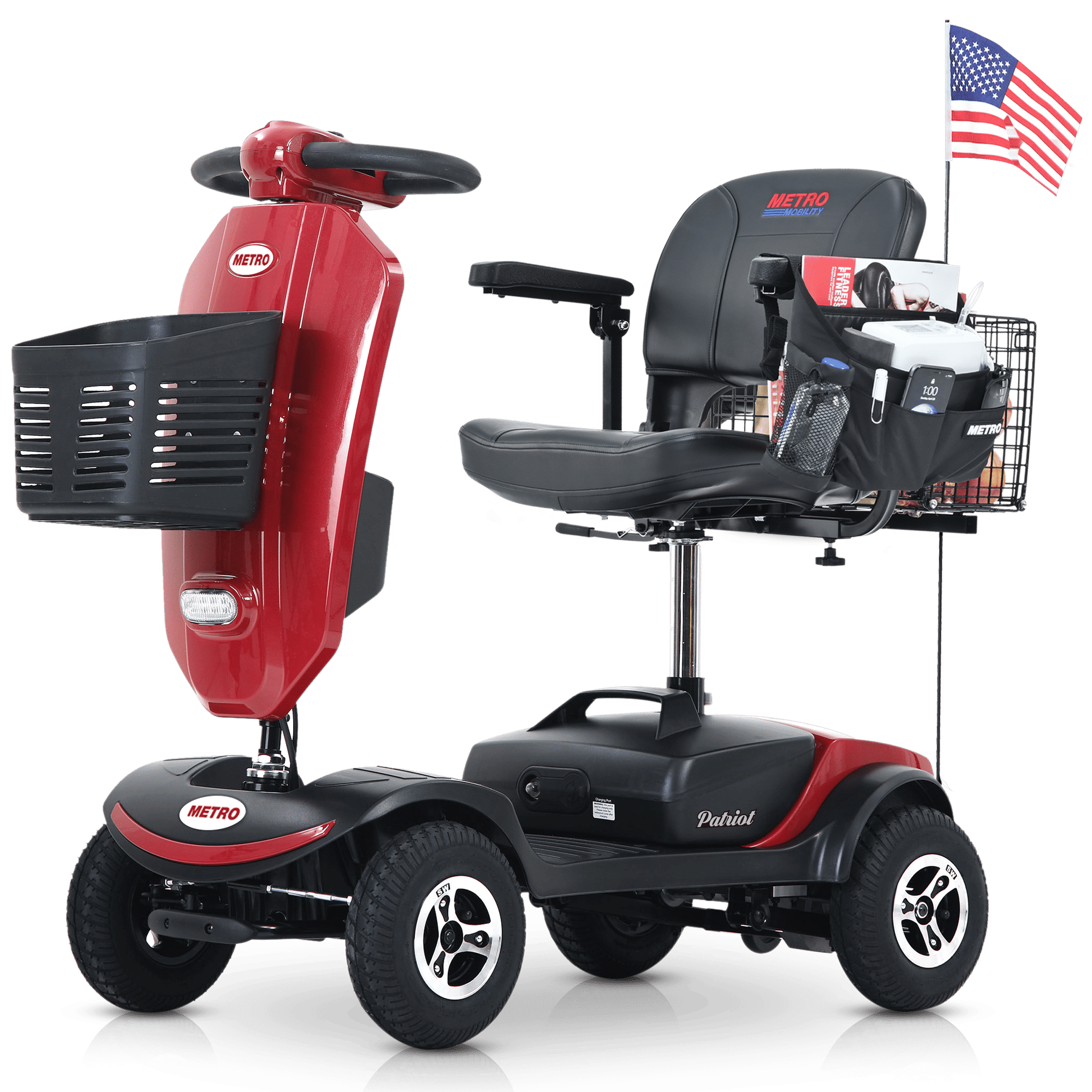 Outdoor compact mobility scooter with windshield ,300W Motor, Travel - Long Range Power Extended Battery with Cup holders , Storage Bag, Rear Basket & USB charger port,RED
