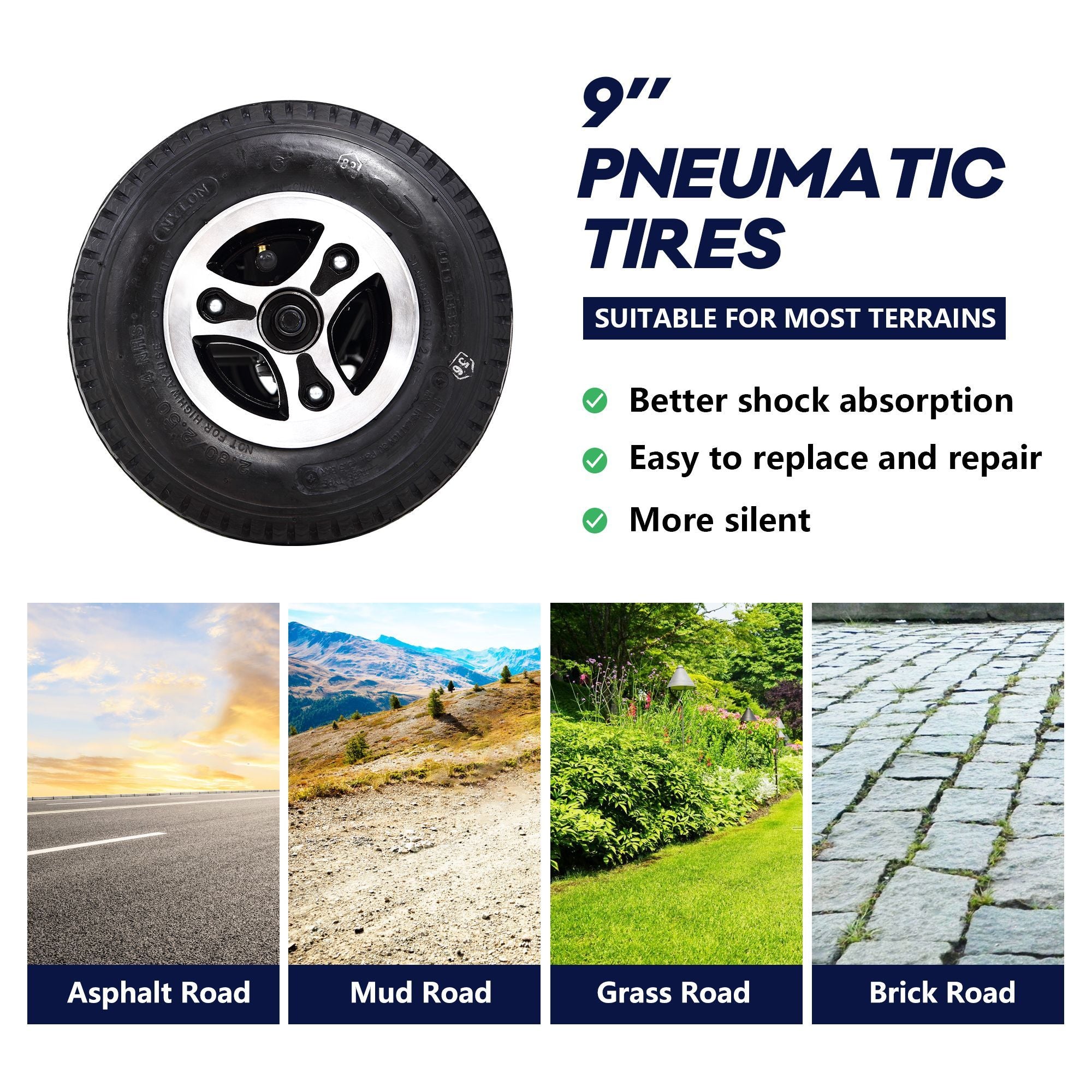 Front & REAR 9inches pneumatic tire