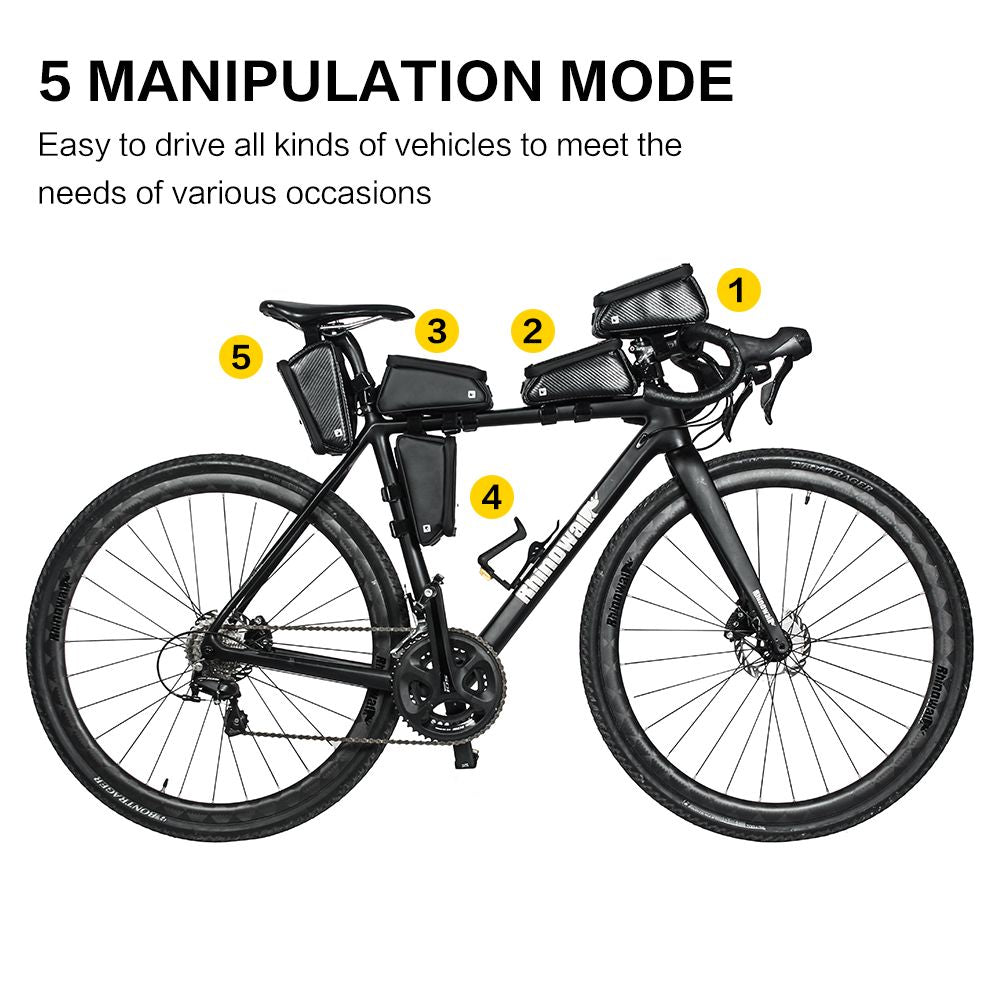 *DURABLE & WATER RESISTANT: The bike top tube bag is made of ultralight and stylish carbon fiber material with sealed double zippers closure, which ensures the water doesn't flow into the bag.The sun visor and flashing board is great use for rainy or sunny day