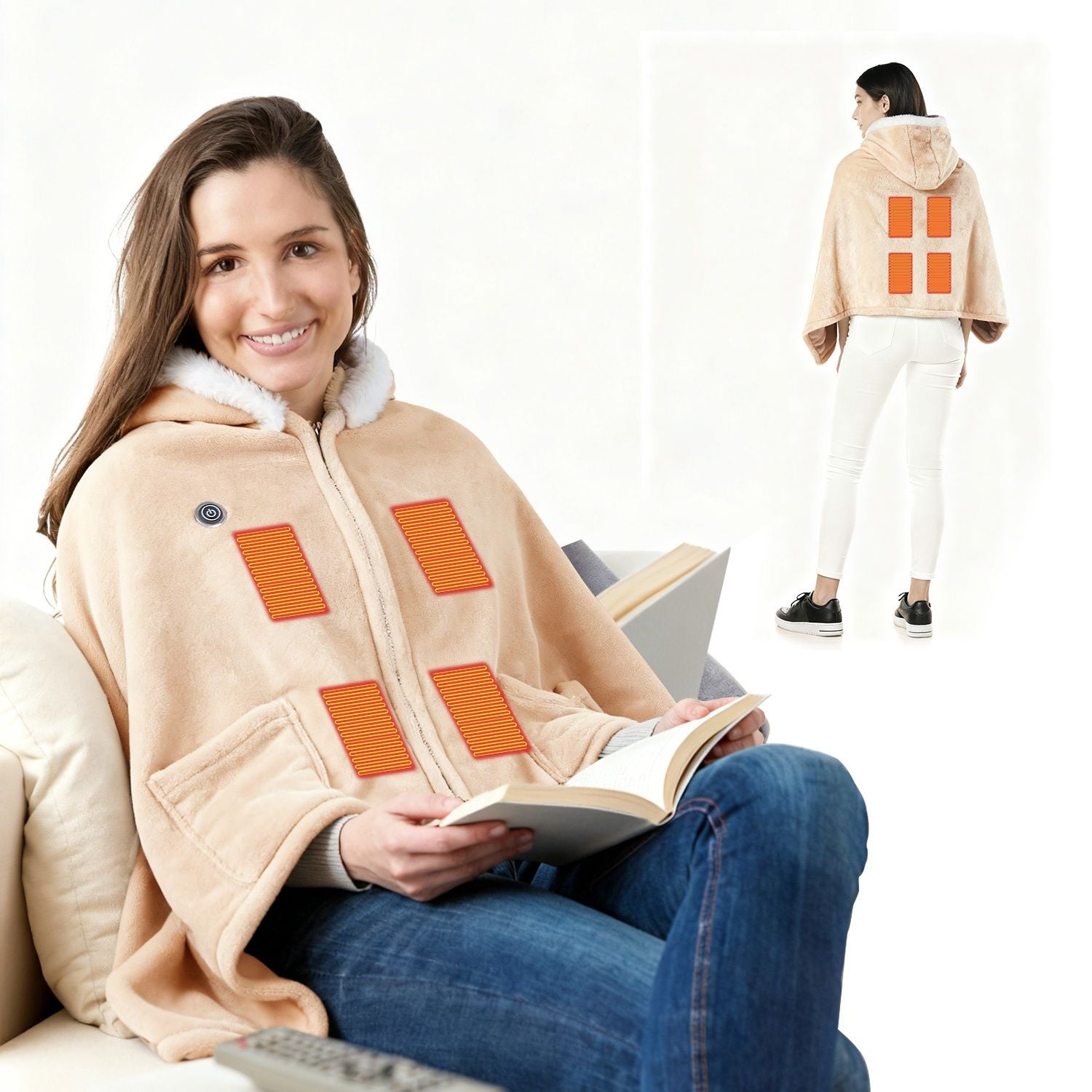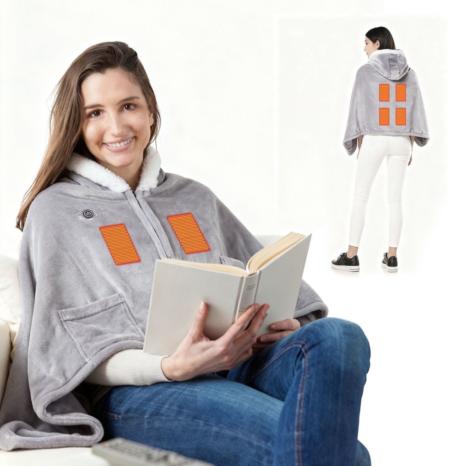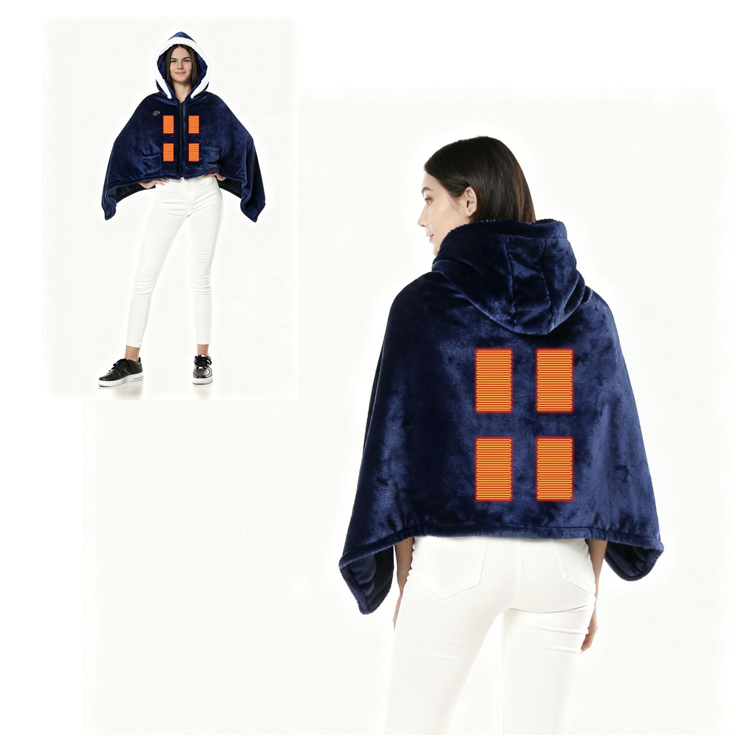 Wearable Heated Throw Blanket Double-Sided Flannel Portable Electric Heating Hoodie For Women Men Machine Washable 3 Heating Levels Battery Operated