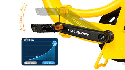 A torque sensor matches your pedaling effort, making the ride more efficient and comfortable.