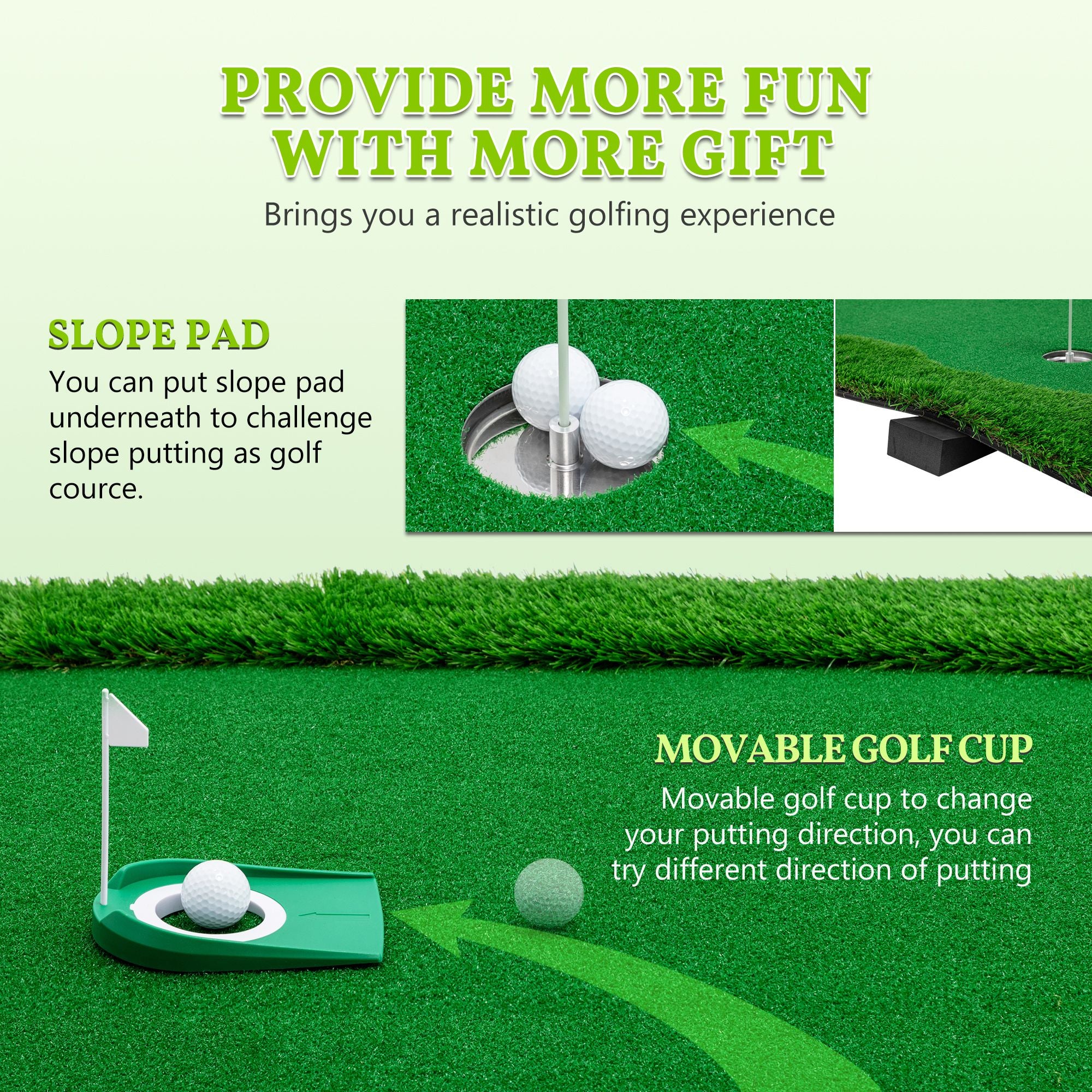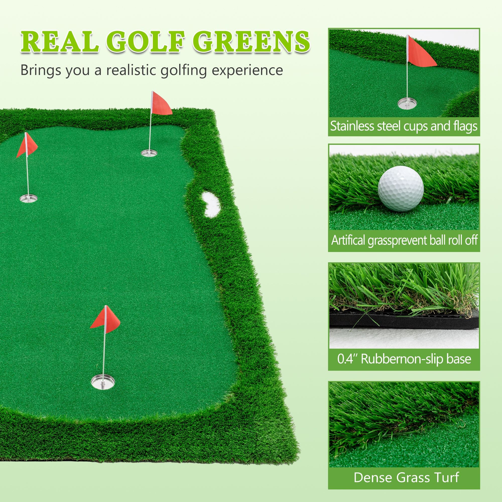The golf putting green comes with 3 golf holes and is also equipped with a stainless steel cup and flagpole to improve accuracy and precision when hitting, giving you a realistic golf experience.