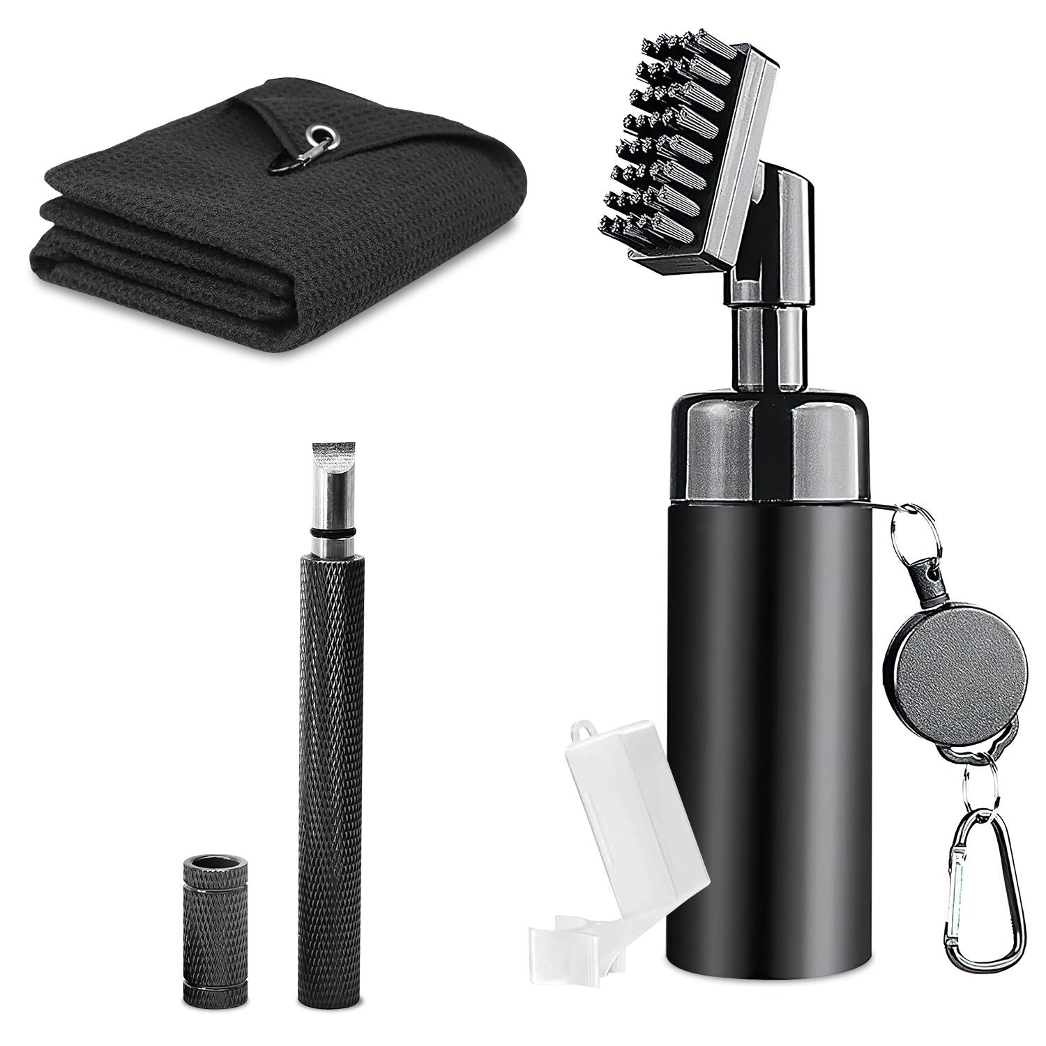 3 In 1 Golf Club Cleaning Kit Golf Club Cleaner Brush with 5Oz Water Bottle Retractable Clip Groove Sharpener Golf Towel Gift for Golfers