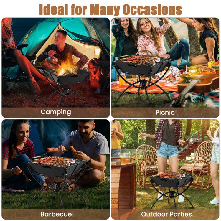 3-in-1 Versatile Collapsible Grill: This patio fire pit comes with 3 pieces of grills and works well with carbon, log and other bio-pellet fuel. As a result, you can use it as a camp fire pit, a BBQ grill or a camp stove, meeting your different outdoor demands.
